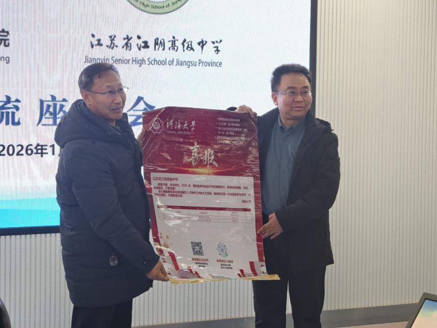 双方围绕中学与大学在人才培养方面的衔接机制进行了深入交流,就未来共建实践育人平台、组织校园开放日、开展夏令营活动等合作形式达成共识。招生组还向江阴高级中学送交了优秀学子喜报,表达对双高育人成果的充分肯定。