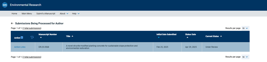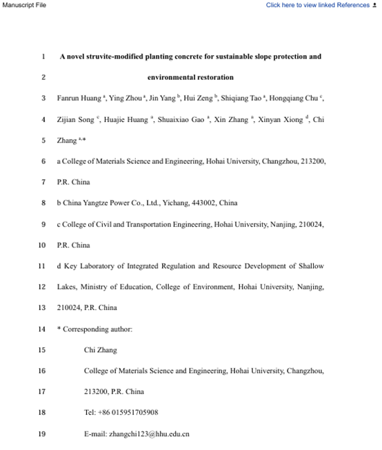 周颖(第二作者),A novel struvite-modified planting concrete for sustainable slope protection and environmental restoration,Environmental Research,2025.2.25(Under Review)。