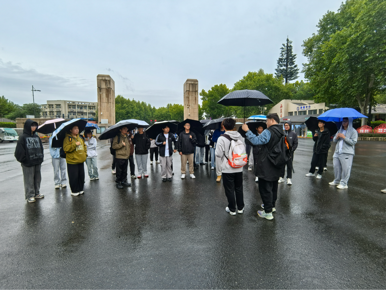 细雨朦胧中,入团积极分子们撑伞集结于雨花台景区入口。古朴的建筑与苍劲的松柏交相辉映,仿佛在无声诉说着这里的历史厚重。大家在讲解员的引导下,带着对革命先烈的崇敬之心,开启了这段红色寻访之旅。大家自发放慢脚步、放轻声音,用沉默与凝望,向长眠于此的英烈致以最崇高的敬意,每一步踏在雨花台的土地上,都似在与先辈们进行一场跨越时空的精神对话。